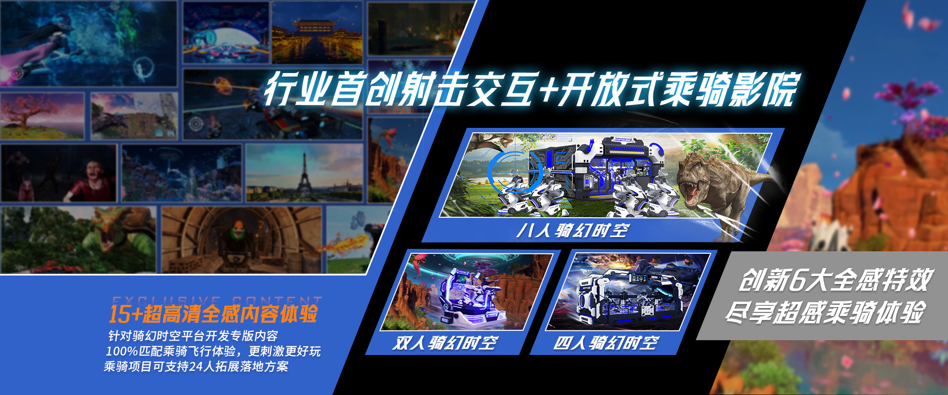 公司現(xiàn)已擁有知名“穿越時(shí)空(VART)”VR品牌完整產(chǎn)品線,主推VR元宇宙主題樂(lè)園,XR研學(xué)基地、LBE大空間定制、5D/7D/軌道/球幕影院/乘騎等定制項(xiàng)目方案。